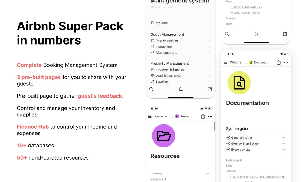 Get rid of expensive software, Airbnb Super Pack is a Notion template built for Airbnb hosts (Or any short-term rental host 🏠).