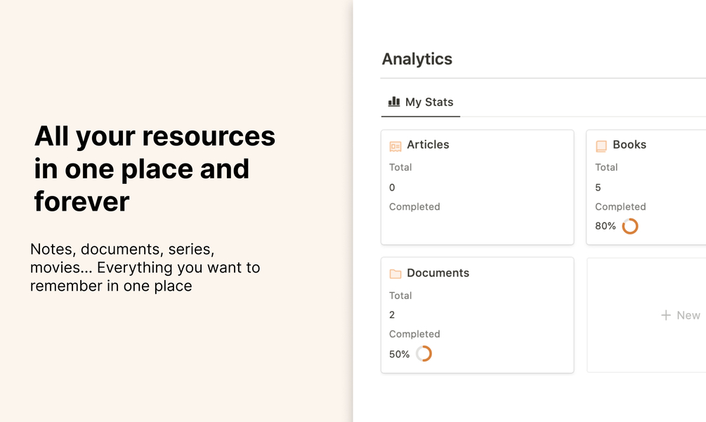 • Analytics in which you can add different types of content that you consume to have analytics about it.