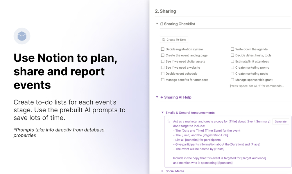 Powered by Notion AI ✨, this template is designed to save you time and make event planning a breeze 🧘🏼‍♀️