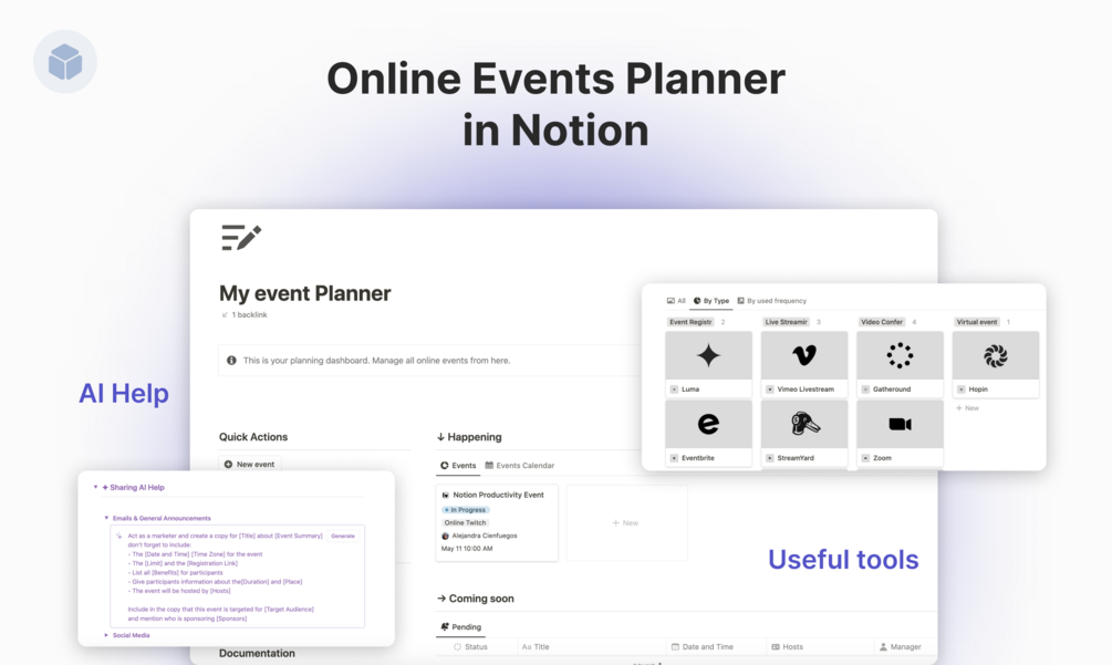 The template is perfect for planning, sharing, and reporting online events. It's easy to use and customizable to fit your specific needs. Plus, with Notion AI, the template can even suggest ways to improve your events based on the information within the database properties 🤯